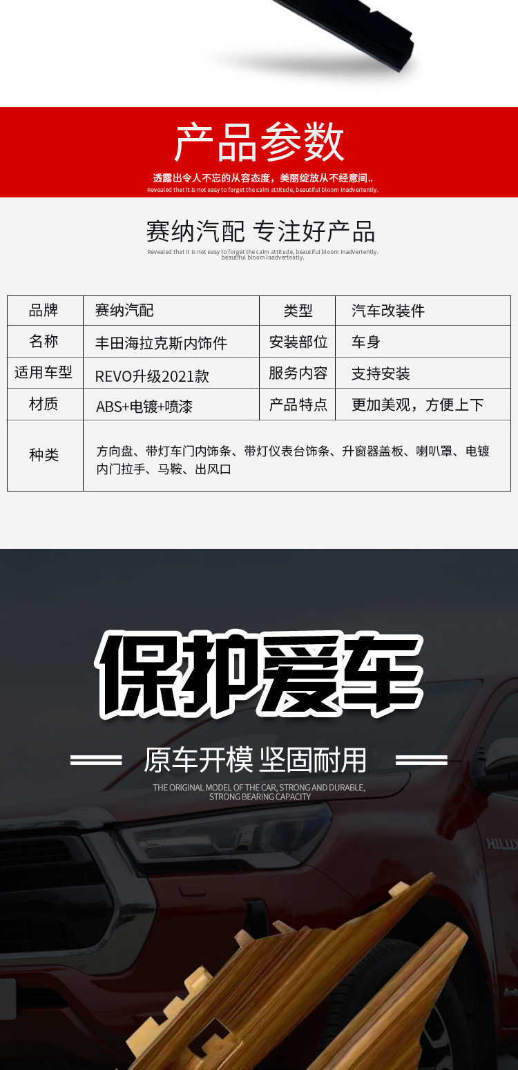 丰田海拉克斯内饰件